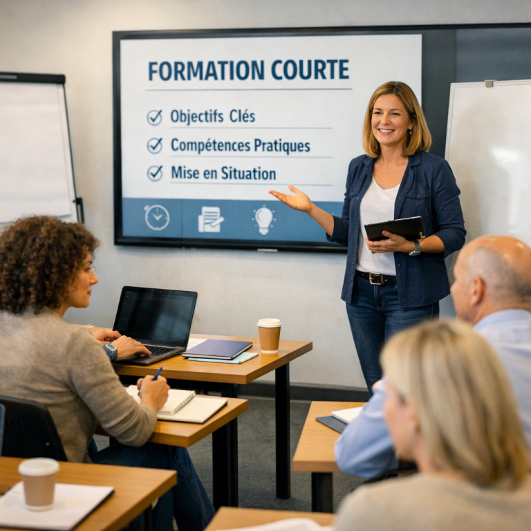 Se spécialiser dans un domaine grâce à une formation courte, que ce soit sur place ou à distance, offre une opportunité unique d'acquérir des compétences précises et adaptées aux besoins du marché. Ces formations, souvent concentrées sur des aspects pratiques et techniques, permettent d'une part de se requalifier rapidement et d'autre part de rester à la pointe des évolutions dans son secteur. En optant pour le format à distance, les apprenants bénéficient d'une flexibilité qui leur permet de concilier vie professionnelle et formation. Ainsi, que ce soit en présentiel ou en ligne, la formation courte se révèle être un levier puissant pour booster sa carrière et développer son expertise.